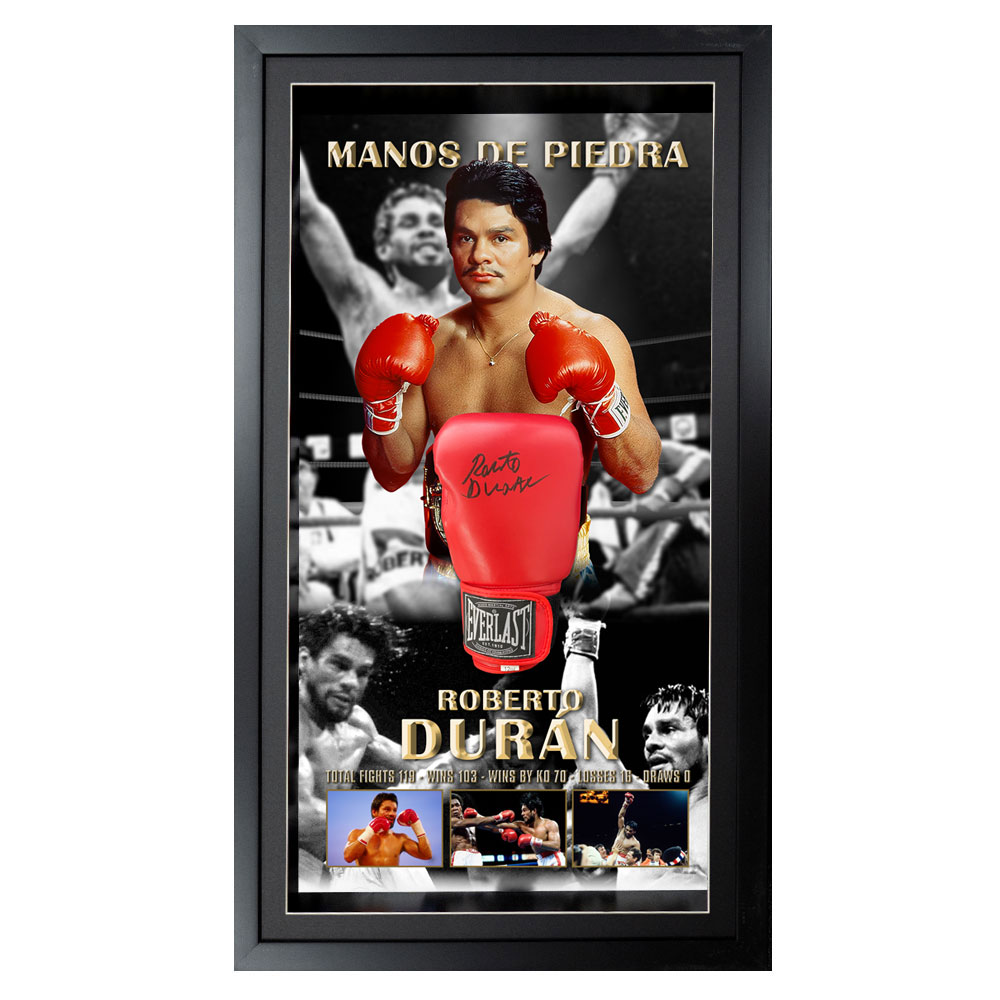 Boxing – Roberto Duran Signed & Framed Red Everlast Boxing Glove