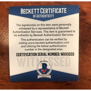 - Accompanied by an Individually Numbered Certificate of Authenticity as well as a third party Beckett Witnessed Certificate of AuthenticityĀ