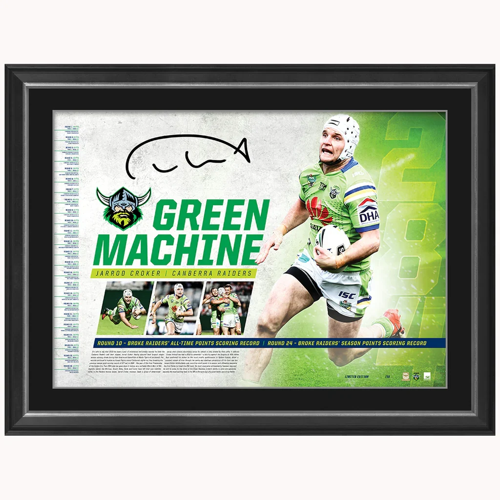 Canberra Raiders – Jarrod Croker Signed Framed ‘Green Machine’ Limited Edition Print