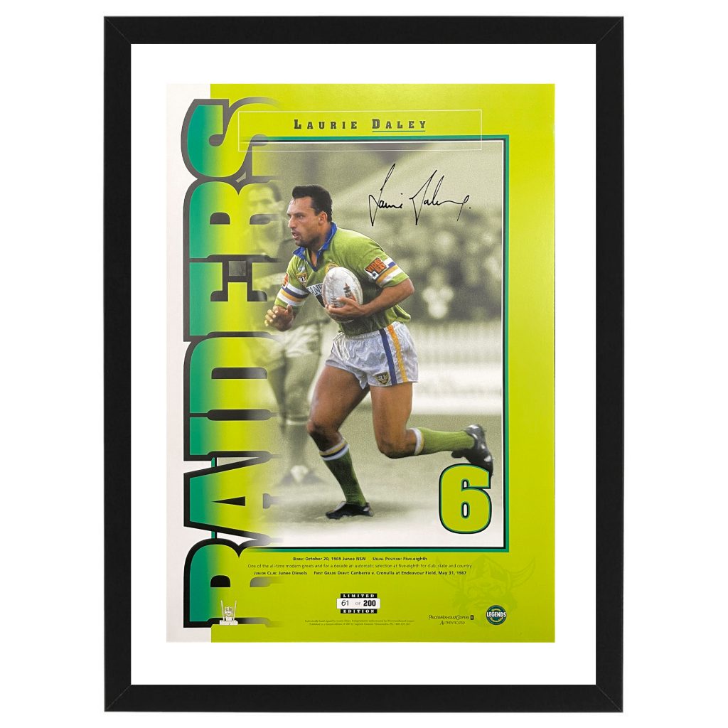 Canberra Raiders – Laurie Daley Signed & Framed ‘Numbers Up’ Print