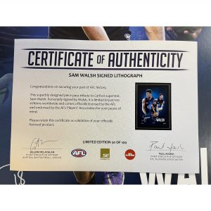 - Strictly limited to 100 editions, with each edition accompanied by an individually numbered AFL-endorsed Certificate of Authenticity