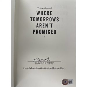 - Where Tomorrows Aren’t Promised Hardcover Book hand signed on the inside of front cover by Carmelo Anthony