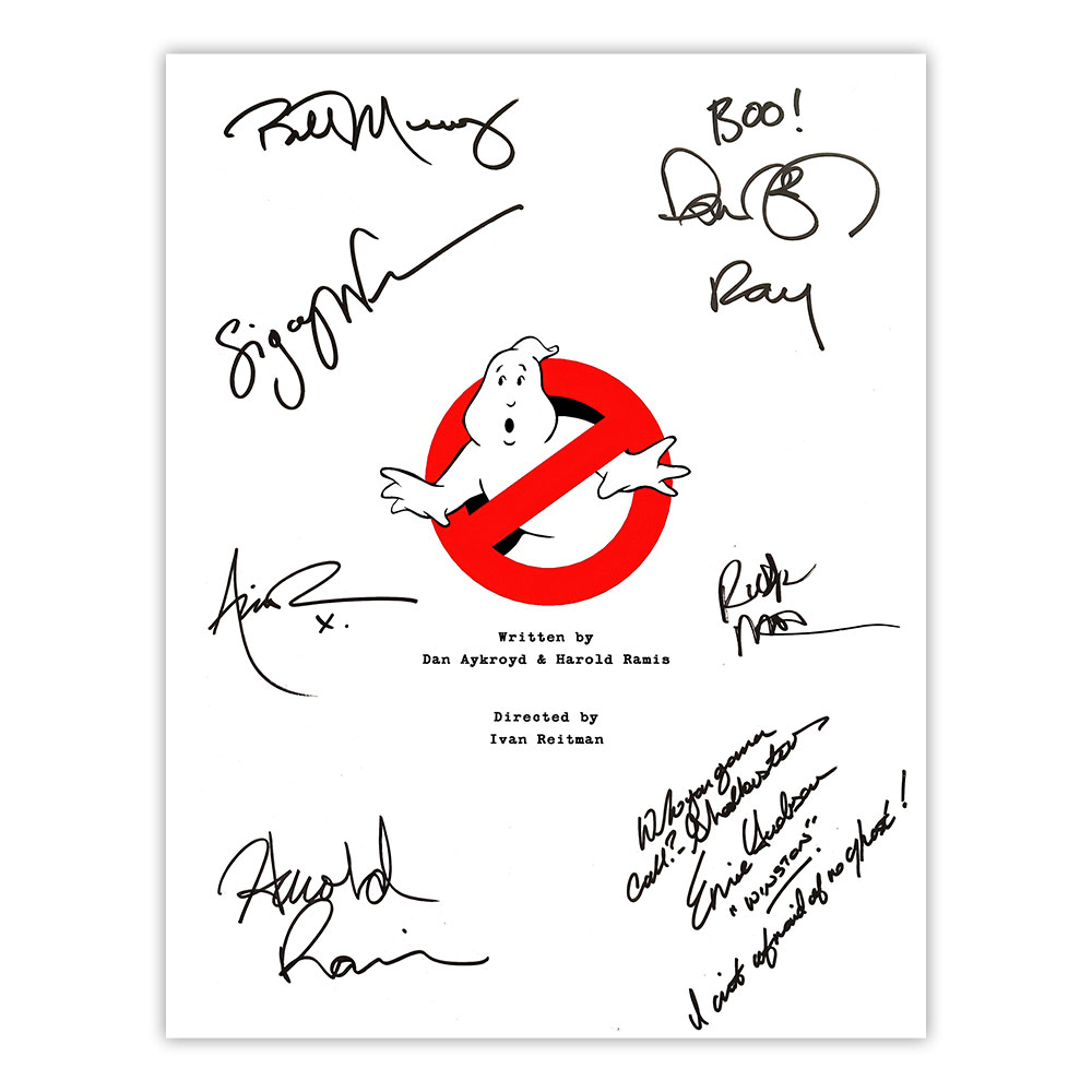 Ghostbusters movie script cover featuring cast facsimile signatures