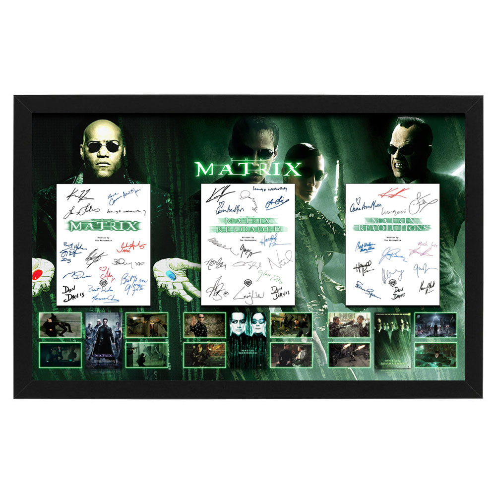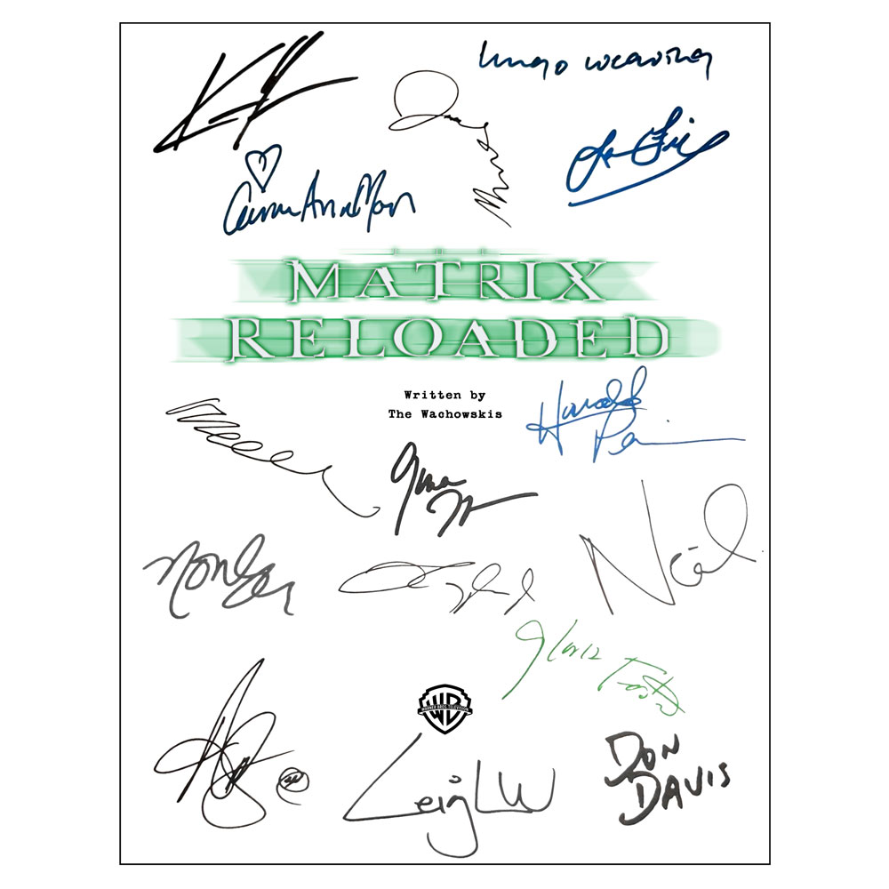 • The Matrix, Matrix Reloaded & Matrix Revolutions, movie script covers featuring cast facsimile signatures including: Keanu Reeves, Laurence Fishburne, Carrie-Anne Moss, Hugo Weaving, Joe Pantoliano & More