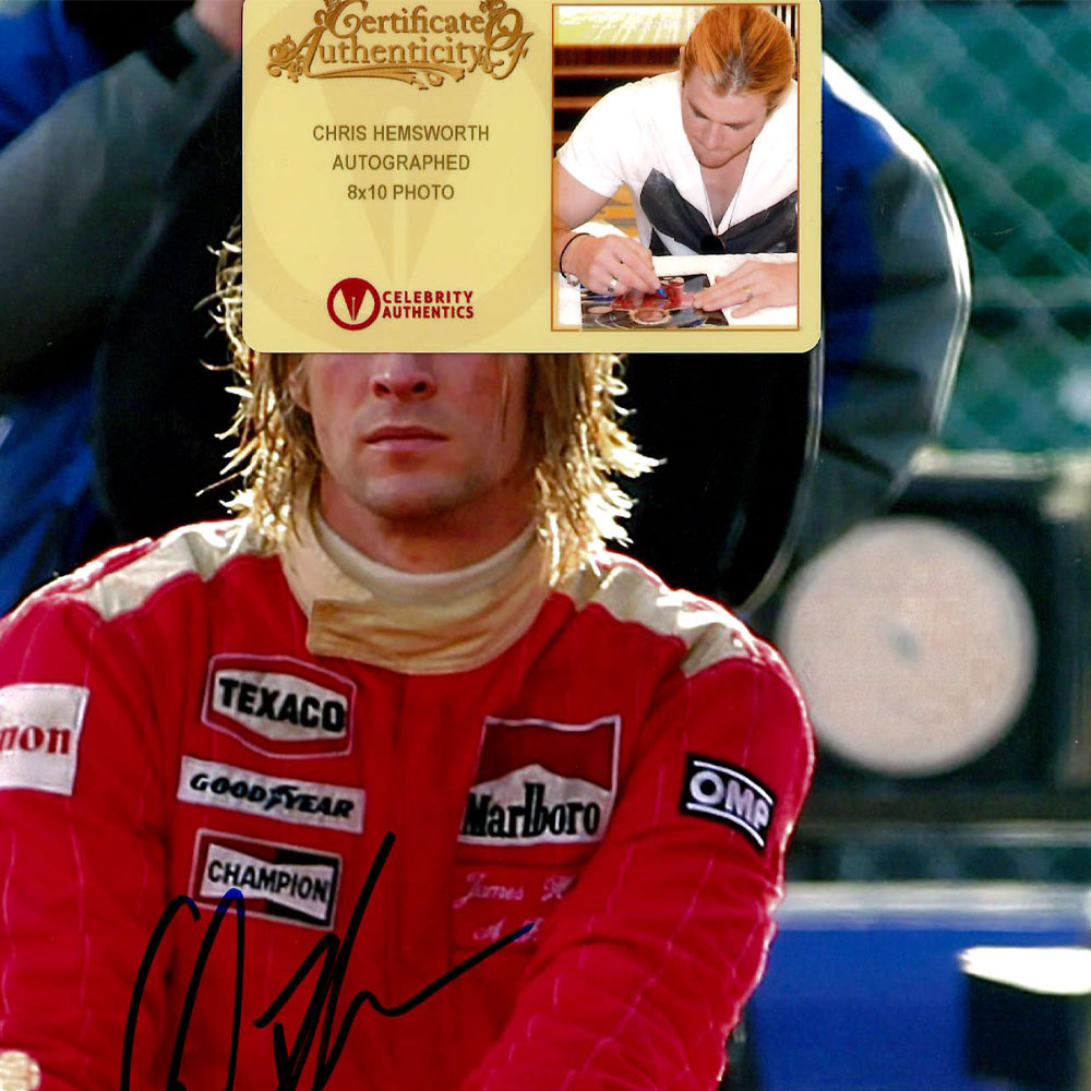 - High quality 8×10 Rush photograph hand singed by Chris Hemsworth (James Hunt)