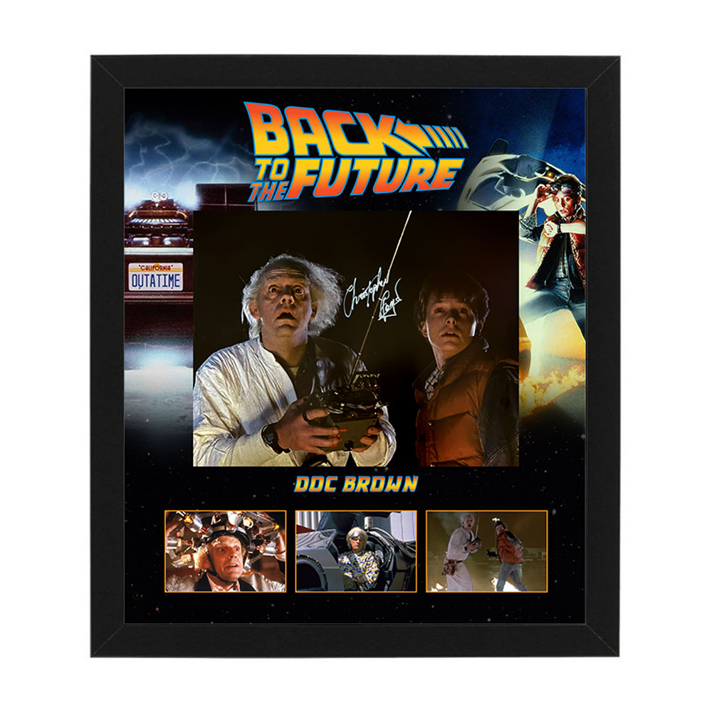 - High quality 16″ x 20″ photograph, personally signed by Christopher Lloyd (Doc Brown), mounted into a deluxe display