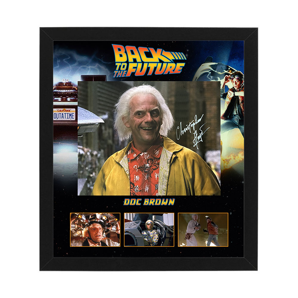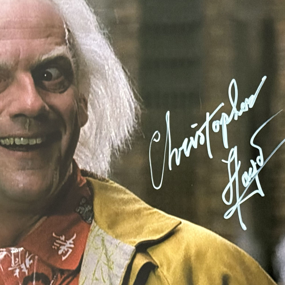 • High quality 16″ x 20″ photograph, personally signed by Christopher Lloyd (Doc Brown), mounted into a deluxe display