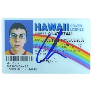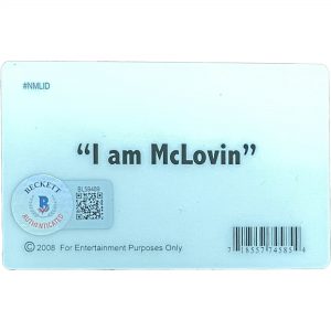 - Plastic McLovin Fake ID License Card from Superbad (2007) hand signed by Christopher Mintz-Plasse (Fogell)
