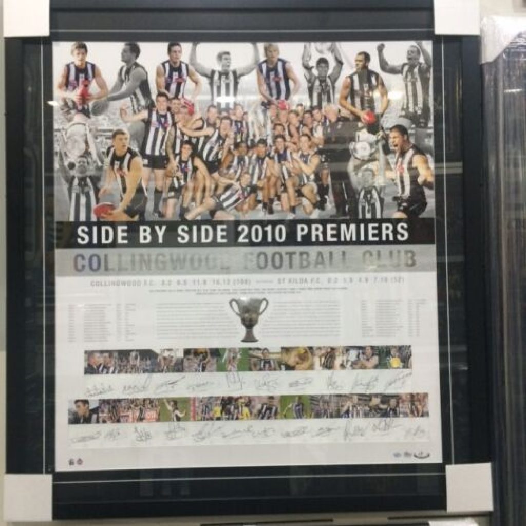 Collingwood Magpies – “SIDE BY SIDE” 2010 PREMIERS TEAM HAND Signed & Framed Limited Edition Lithograph