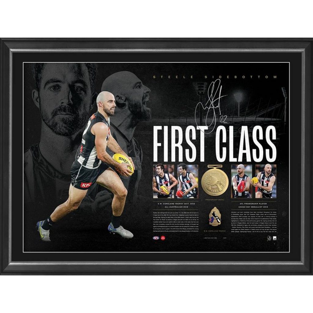 - Integrated into the display is a replica AFL Premiership Medal and E.W Copeland Trophy medallion, paying tribute to Sidebottom’s decorated career