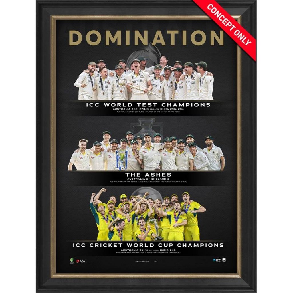 - Features iconic celebration imagery from Australia’s World Test Championship, retention of The Ashes, and Cricket World Cup triumph, alongside statistics from each respective event