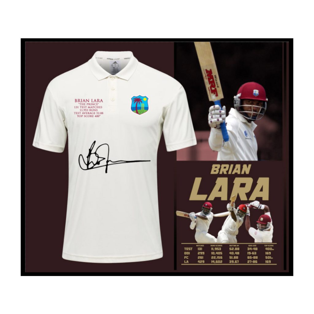 Each Cricket – Brian Lara Signed & Framed Test Shirt features –