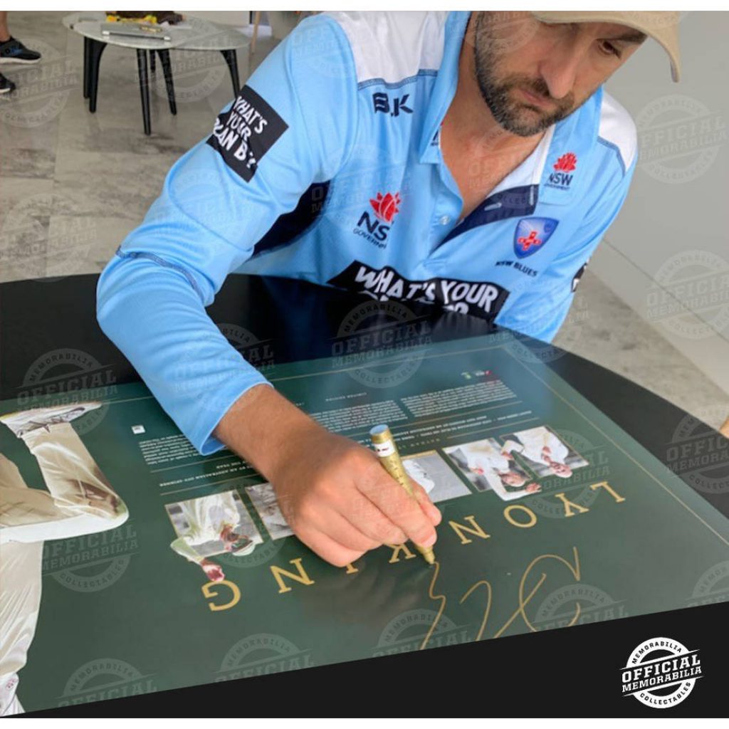 • Personally signed by Australia’s third-highest Test wicket-taker in history and newest member of the ‘100 Tests’ club, Nathan Lyon