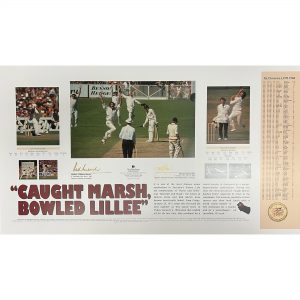This print highlights the unique partnership between two of Australia’s greatest ever players, Rod Marsh and Dennis Lillee. Listing in detail their joint dismissals and career history the print also has action photos of the pair. it is personally hand signed by both legends.