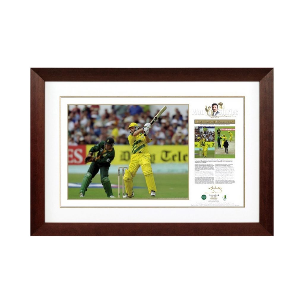Of course this innings is also famous for Steve Waugh’s battle with South Africa’s Herschelle Gibbs. Bizarrely, Gibbs’ habit of celebration before he had complete control over the ball had been discussed at a team meeting. Now into folklore entered Steve’s utterance that reaffirmed his tenacity, gamesmanship and absolute desire to score these runs…. ‘What does it feel like to drop the World Cup?”