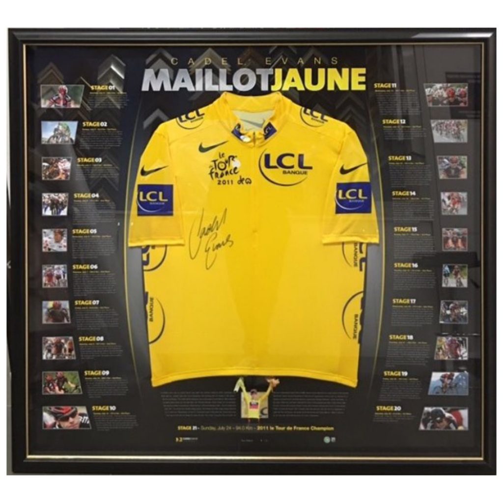 To celebrate and commemorate arguably Australia’s greatest moment on the world sporting stage we are pleased to make available Cadel Evans ‘Maillot Jaune’ is a premium and one of the most sought after memorabilia piece in the Cadel Evans Tour de France Champion Collection..