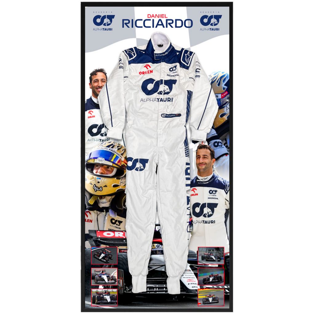 - Full size replica AlphaTauri F1 Team race suit hand signed by Daniel Ricciardo