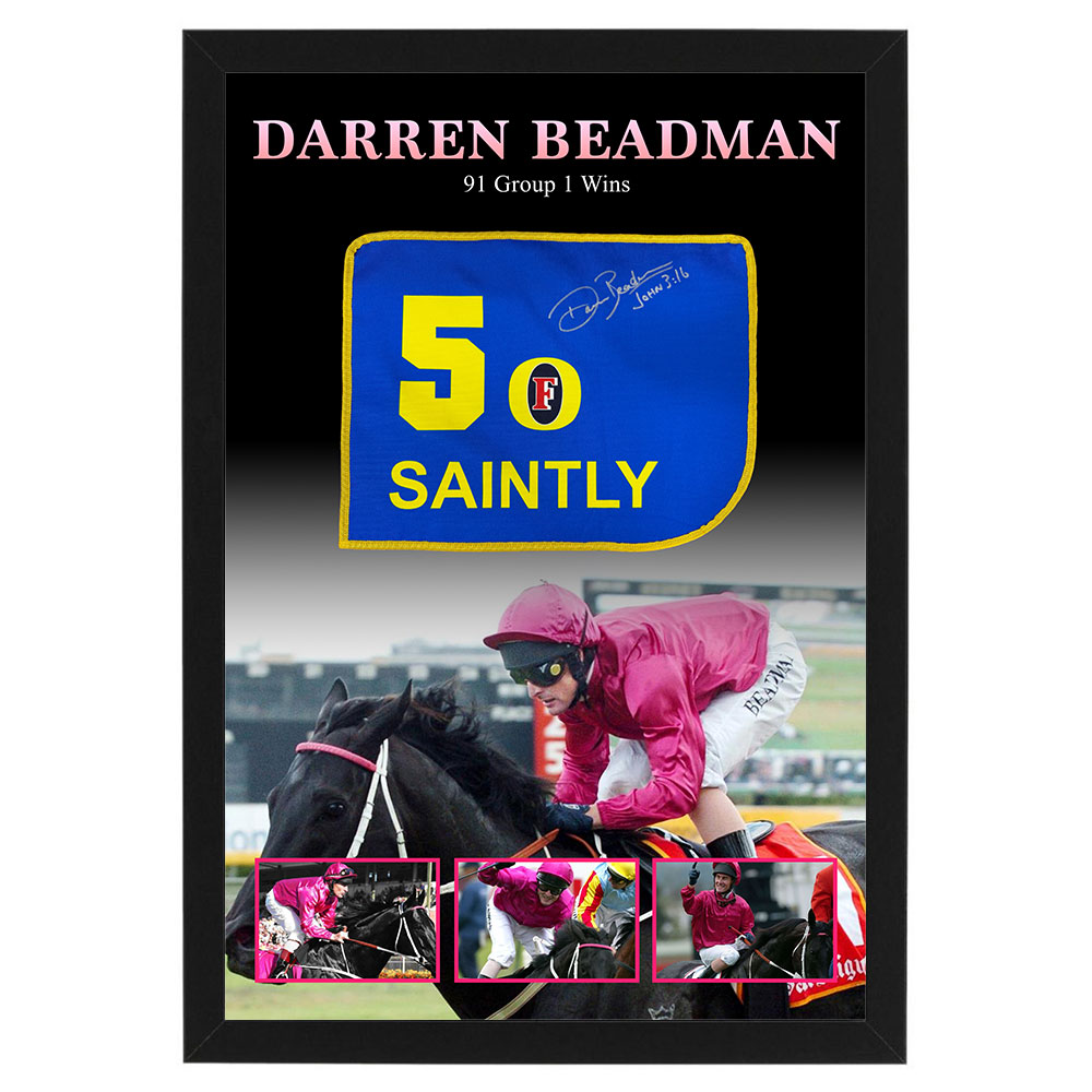 - Replica Mini Saintly Saddlecloth (Approx. 410mm x 310mm) hand signed by Darren Beadman