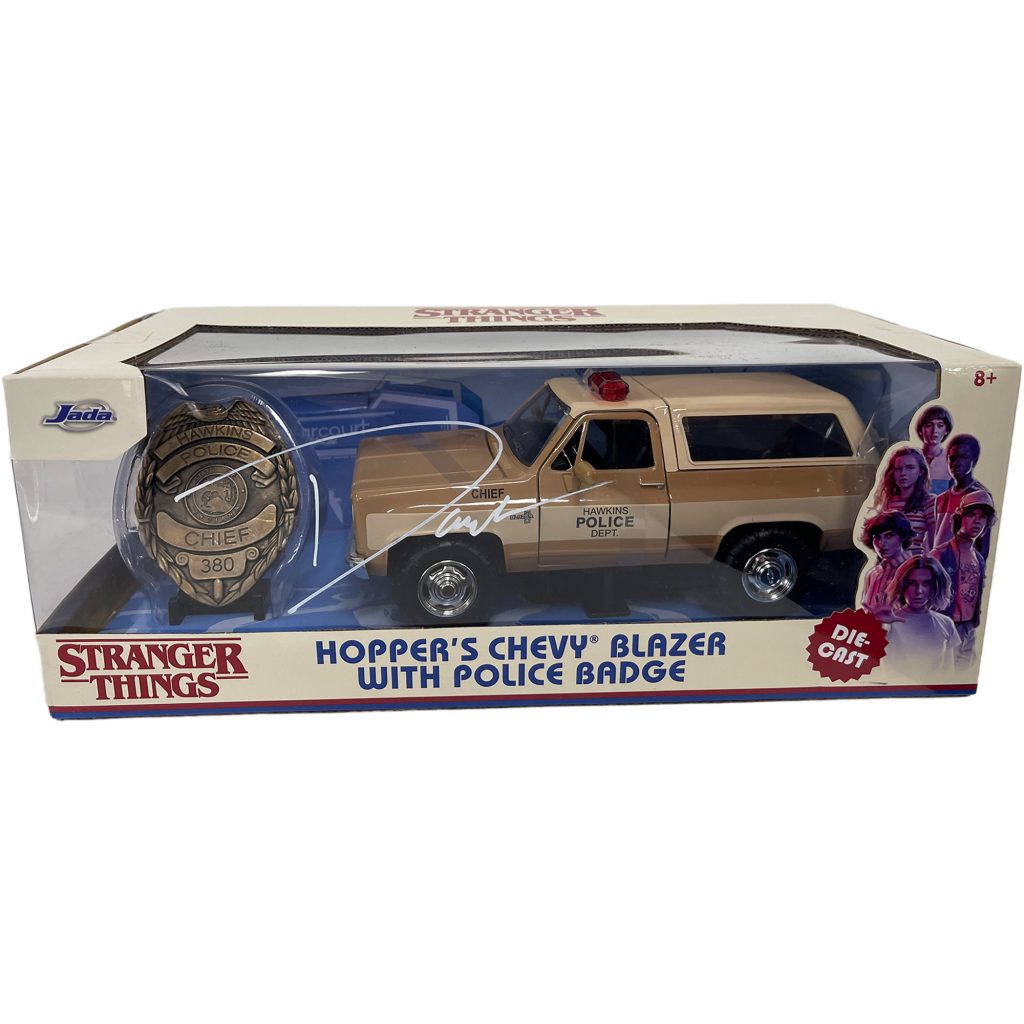 - Jada 1:24 Scale DieCast Model Chevy Blazer (Hopper’s Car) with Police Badge hand signed on the box by David Harbour (Hopper)