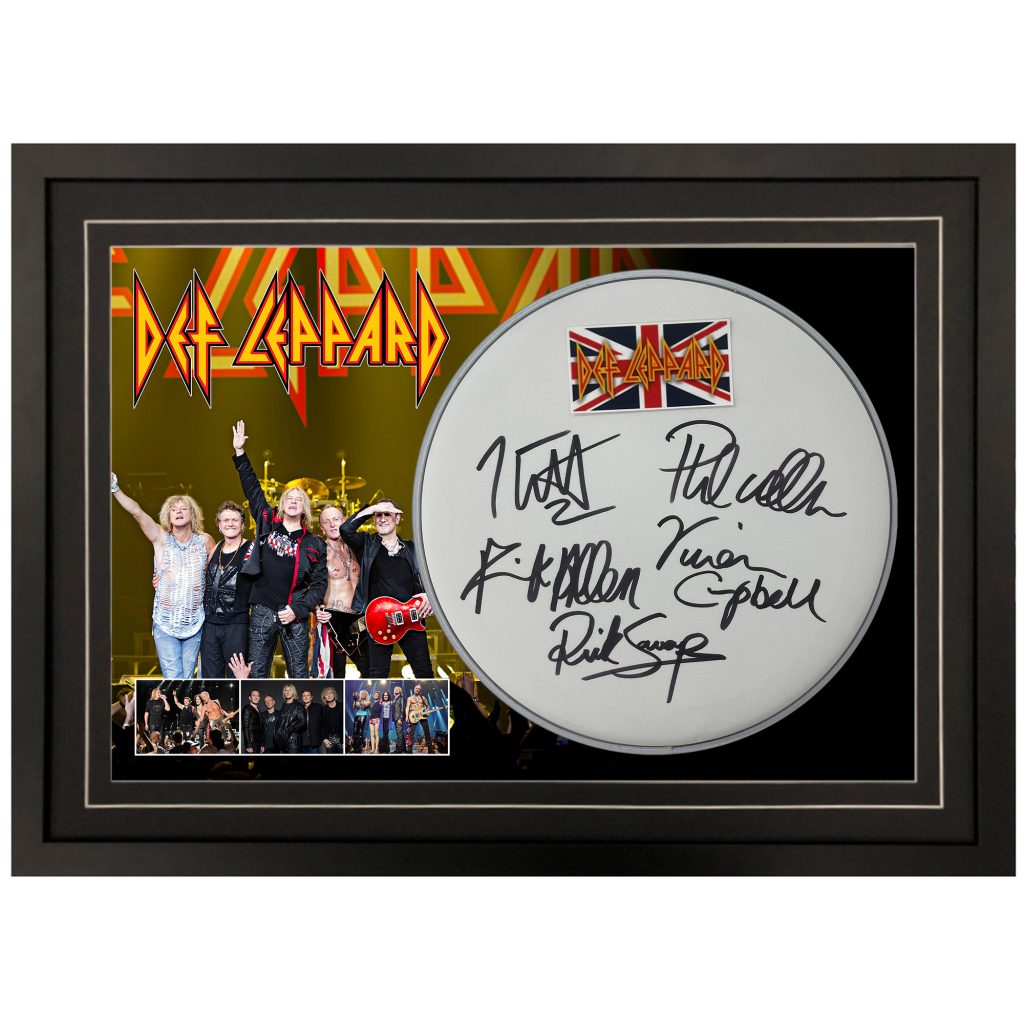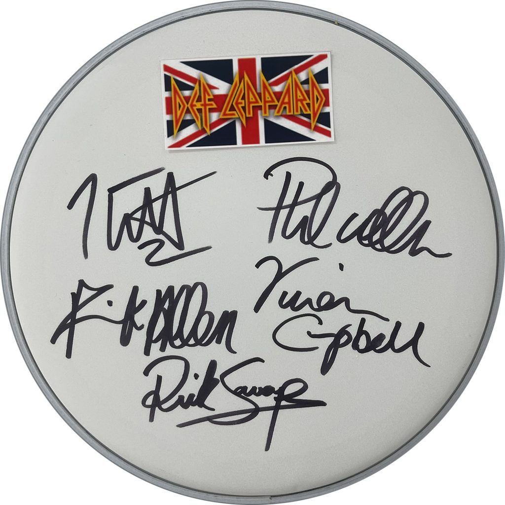 - White Drumskin/Drum head hand signed by members of Def Leppard: Joe Elliott, Phil Collen, Rick Savage, Vivien Campbell & Rick Allen