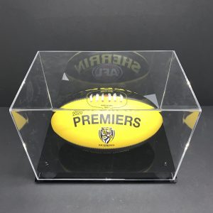 Superior quality, affordable, 2-piece, super-clear, toughened, Ultra-Violet reducing, acrylic deluxe football display case or deluxe football holder.