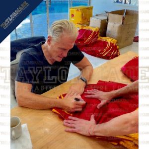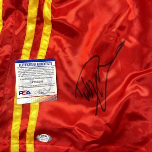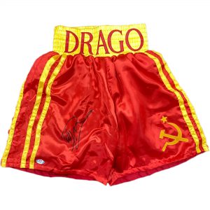 - Red/Gold Replica Rocky IV Trunks hand signed by Dolph Lundgren (Ivan Drago)