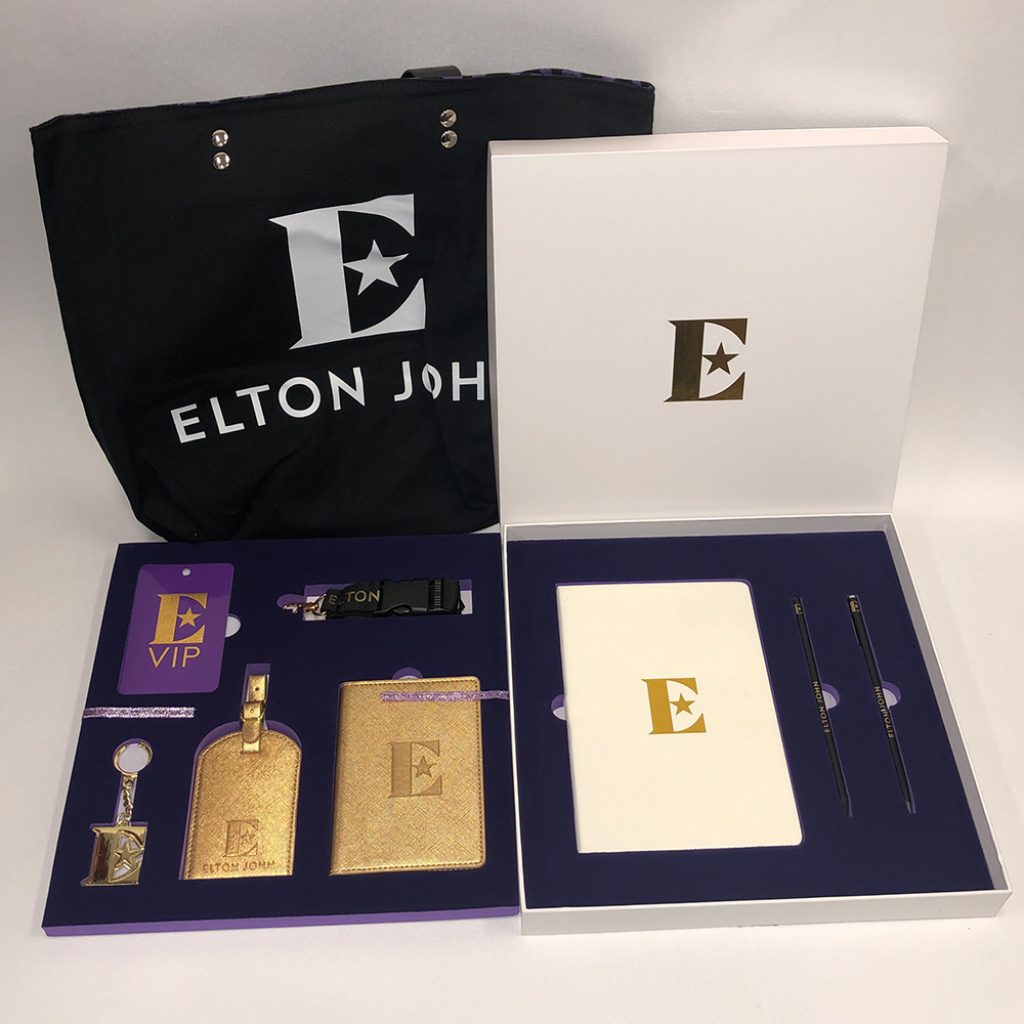 - Elton John branded Bag, VIP Tour Laminate, Lanyard, Keychain, Luggage Tag, Passport Holder, Notebook, Pen & Pencil
