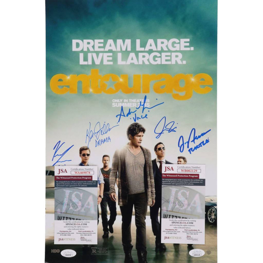 - High Quality 11″ x 17″ photo/mini poster of Entourage (The Movie) hand signed by Adrian Grenier (Vincent Chase), Kevin Connolly (Eric “E” Murphy), Kevin Dillon (Johnny “Drama” Chase), Jerry Ferrara (Turtle) and Jeremy Piven (Ari Gold)
