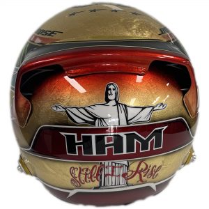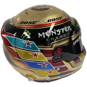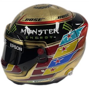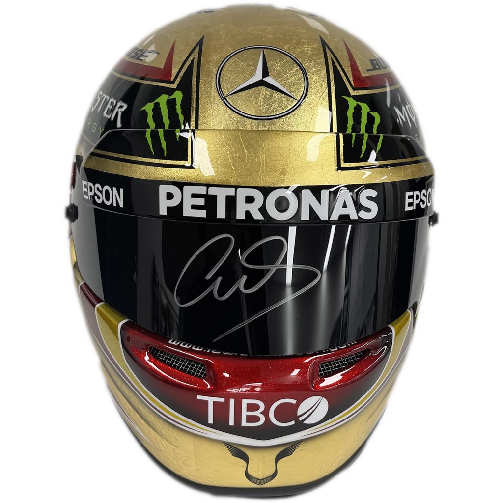 - Replica of Lewis Hamilton’s 2017 Abu Dhabi GP Gold Helmet hand signed by Lewis Hamilton