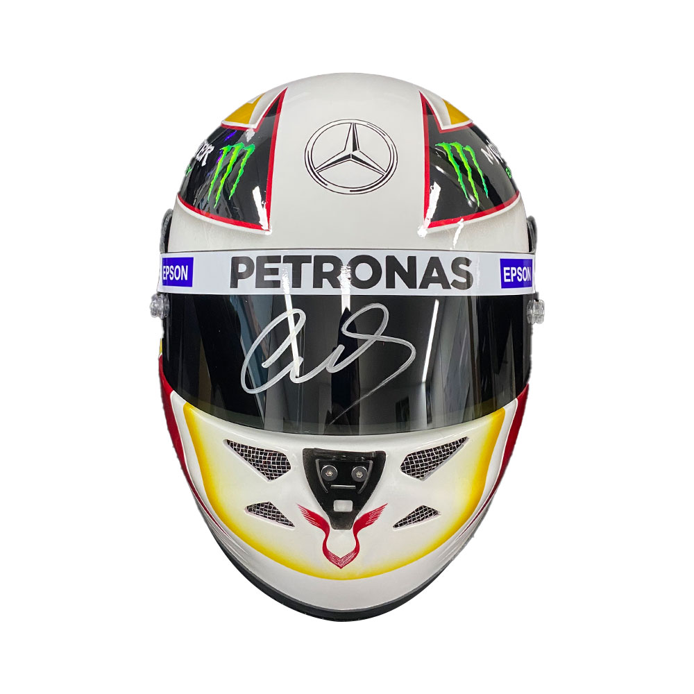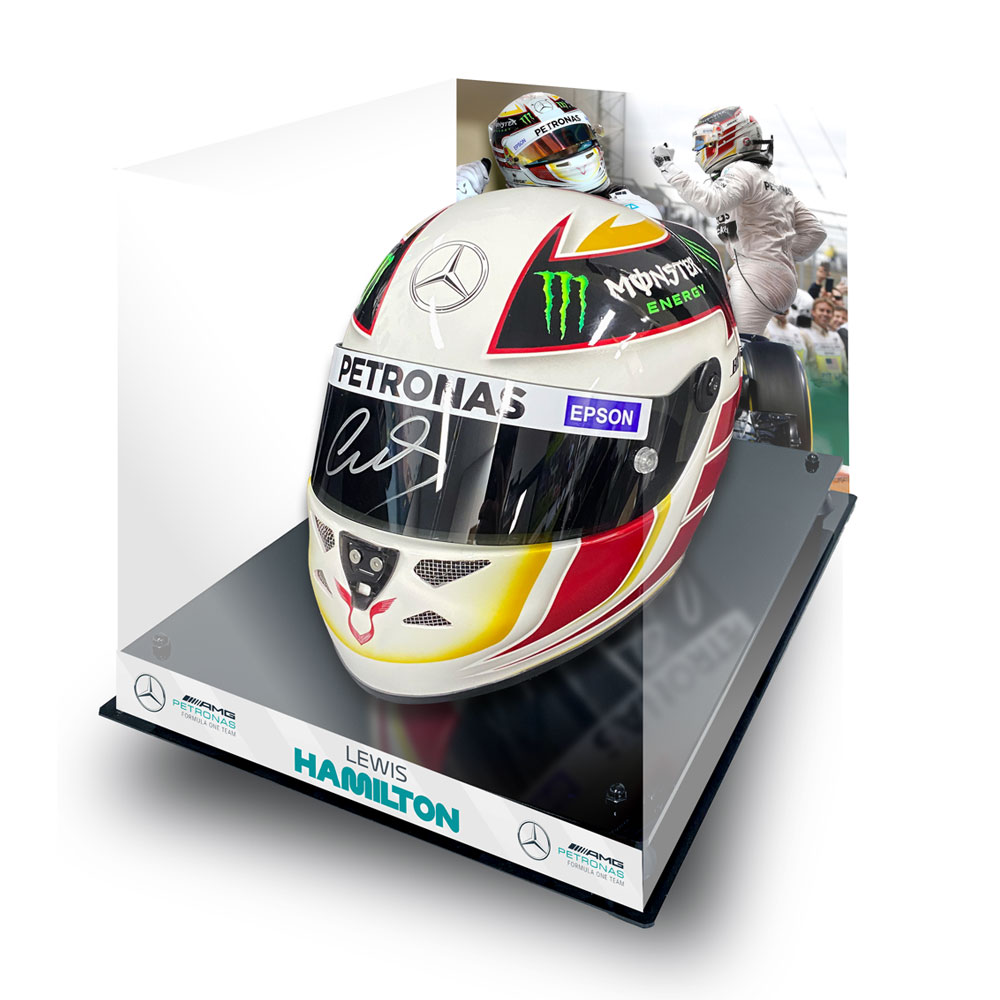• 1:1 Replica of Lewis Hamilton’s Mercedes 2015 Race Helmet hand signed by Lewis Hamilton