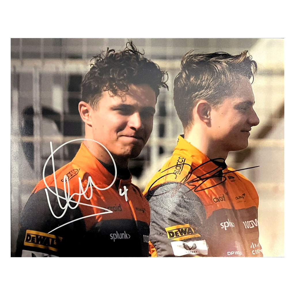 • Oscar Piastri “81” & Lando Norris “4” McLaren Team Shirts with an 8×10 image dual signed by Oscar Piastri & Lando Norris