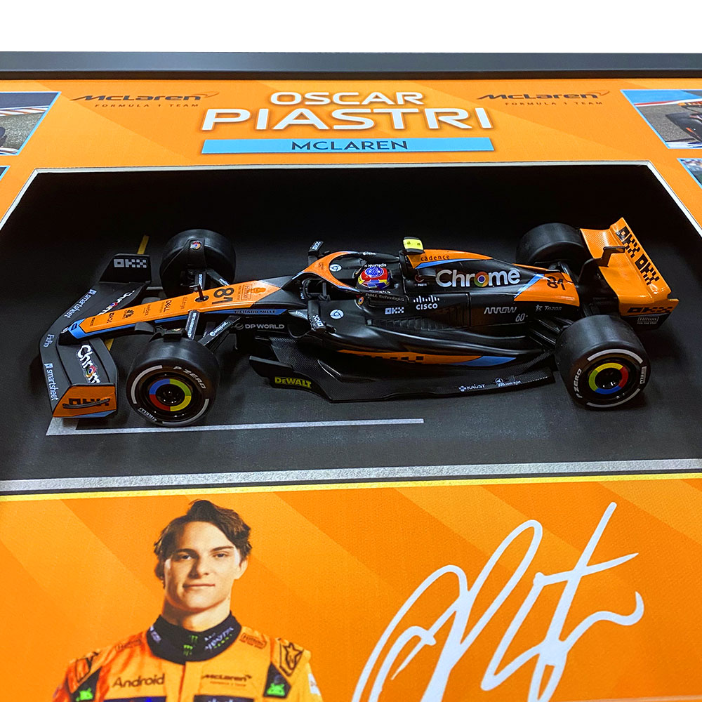 Features Oscar Piastri’s facsimile signature and a collection of high quality photos