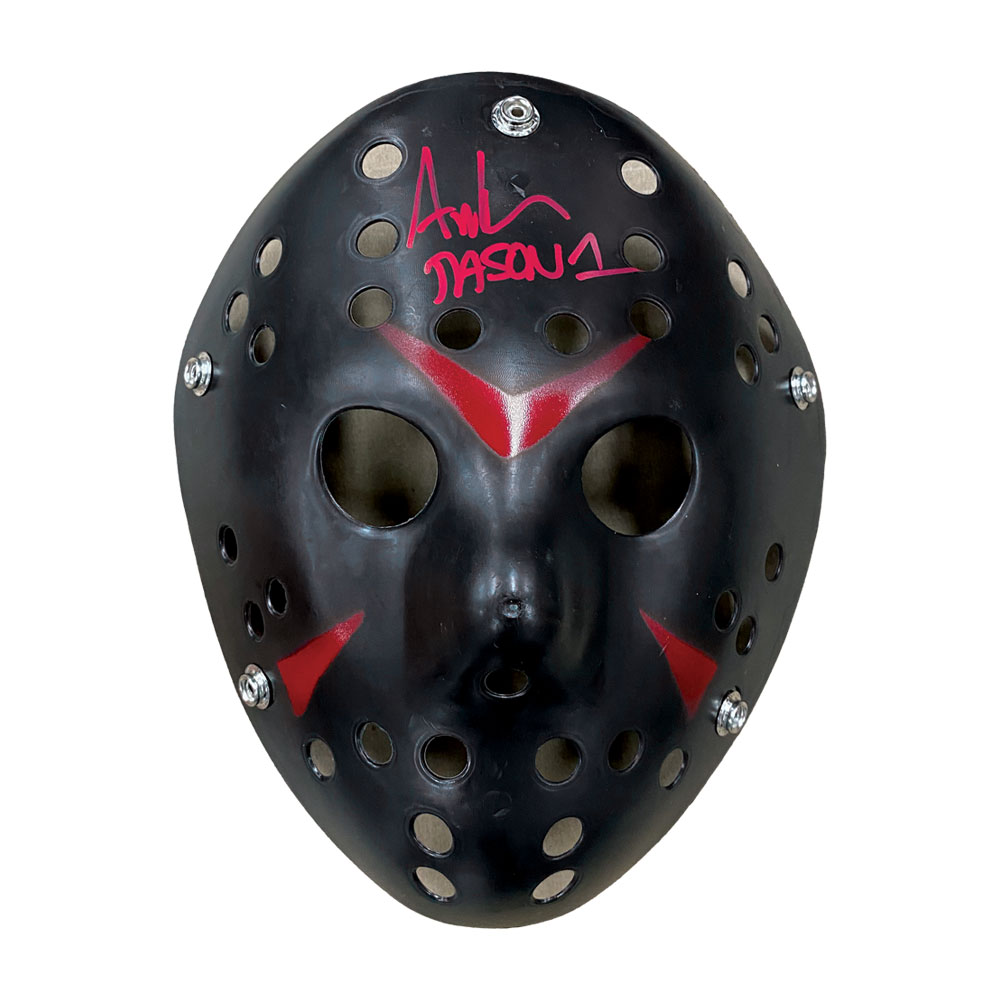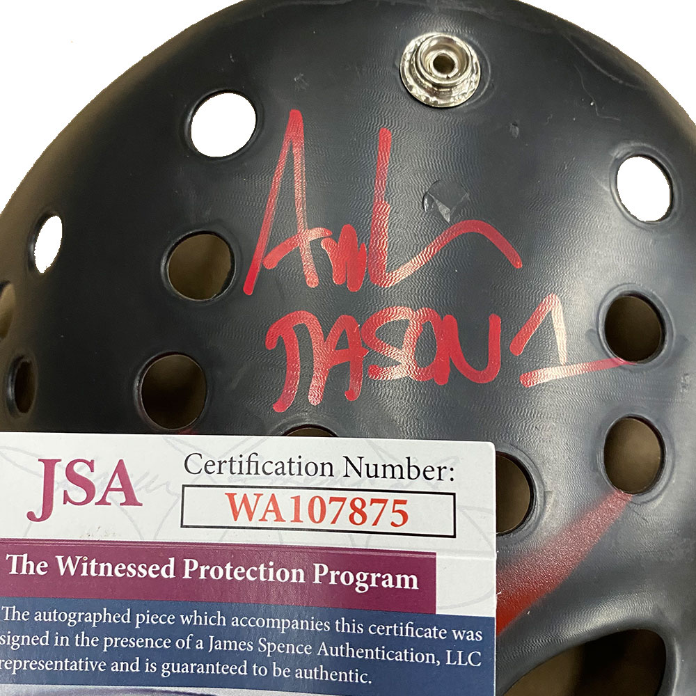- Full-Size Jason Voorhees Black Replica Mask Hand Signed by Ari Lehman