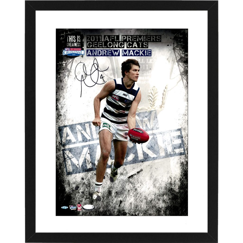 Geelong Cats – ANDREW MACKIE Signed & Framed 2011 Premiers Hero Shot Print