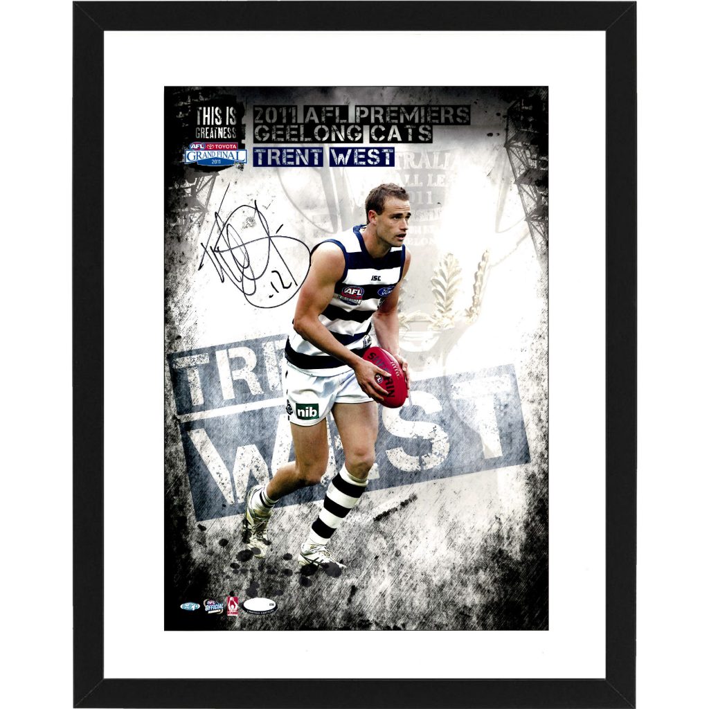 Geelong Cats – TRENT WEST Signed & Framed 2011 Premiers Hero Shot Print