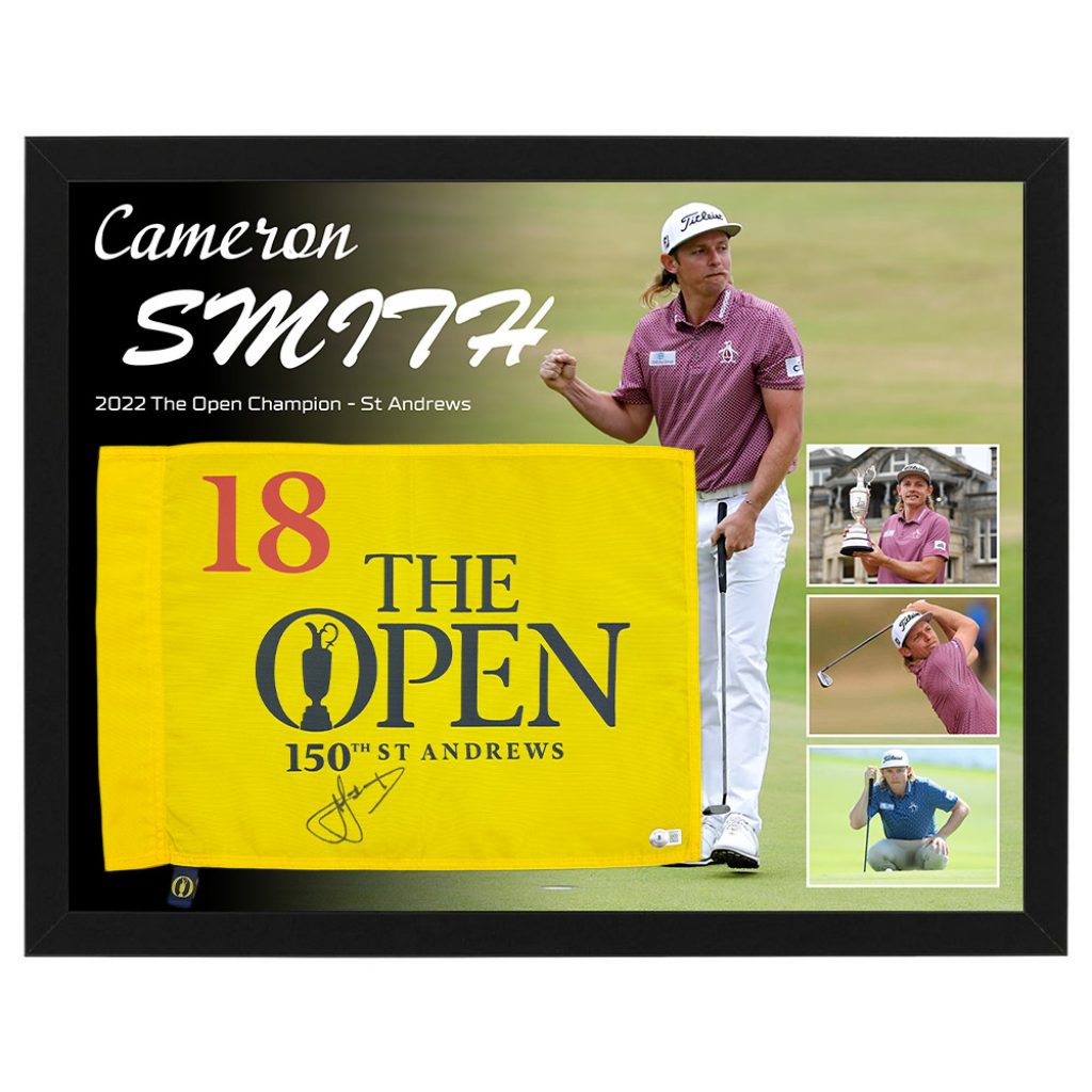 Golf – Cameron Smith Signed & Framed 2022 The Open Pin Flag (Beckett Hologram)