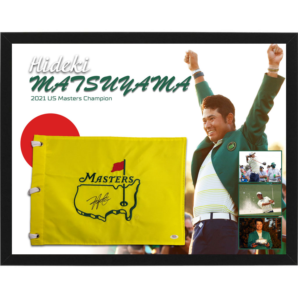 Golf – Hideki Matsuyama Signed & Framed 2021 Masters Flag (PSA)