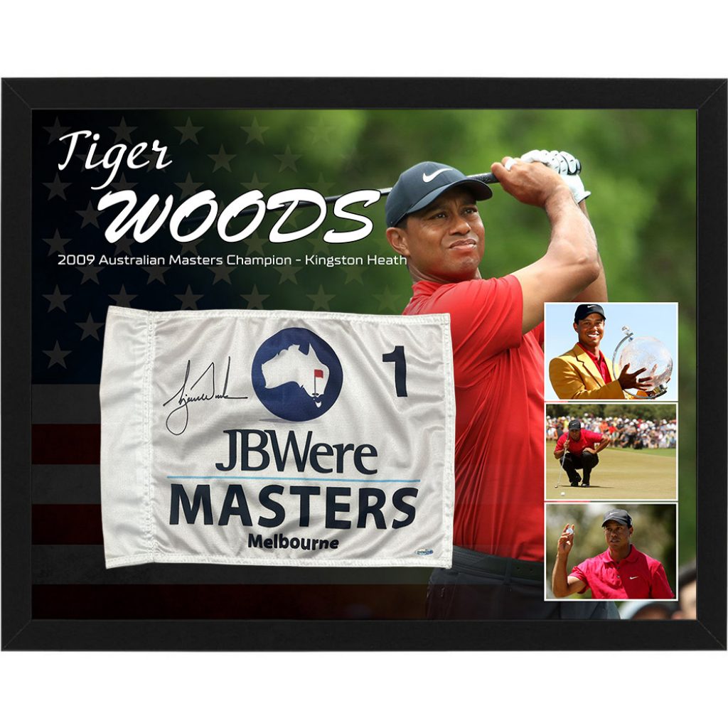 Golf – Tiger Woods Signed & Framed 2009 Australian Masters Golf Pin Flag (Upper Deck COA)