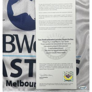 Home/Golf/Shop By Golfer/Tiger Woods/Golf – Tiger Woods Signed & Framed 2009 Australian Masters Golf Pin Flag #1 (Upper Deck COA)