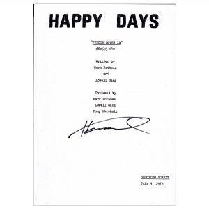 - Happy Days “Fonzie Moves In” shooting script cover page hand signed by Henry Winkler (Fonzie)