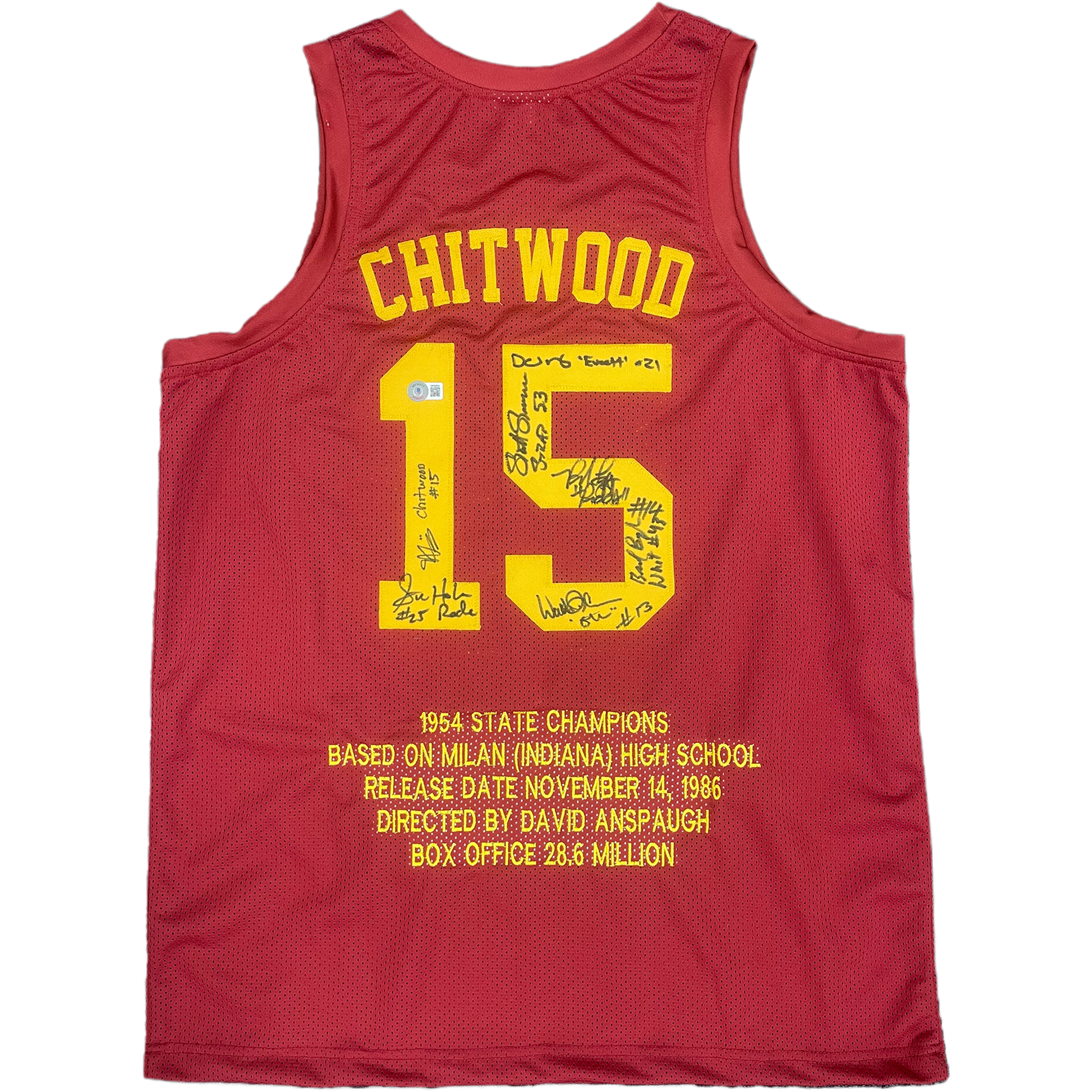 - Custom Hickory Chitwood #15 Jersey from Hoosiers (1986) hand signed by Maris Valainis, David Neidorf, Scott Summers, Brad Long, Brad Boyle, Steve Hollar & Wade Schenck