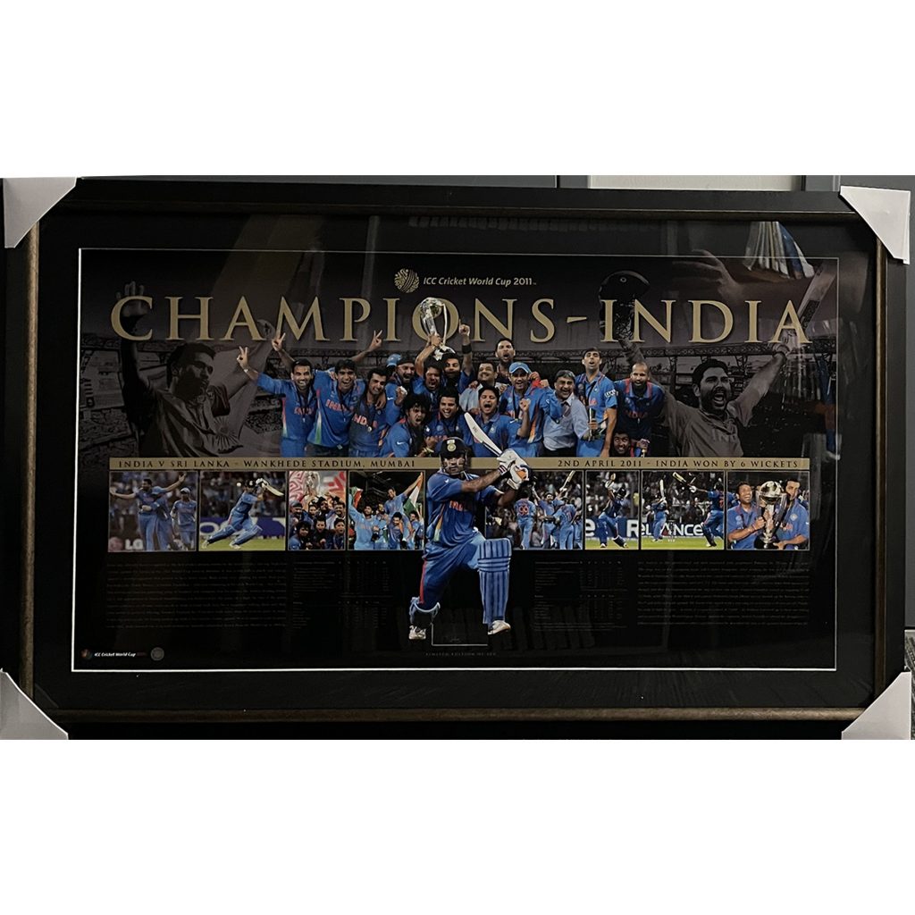 India – 2011 ICC World Cup Champions MS Dhoni Signed & Framed Limited Edition Print