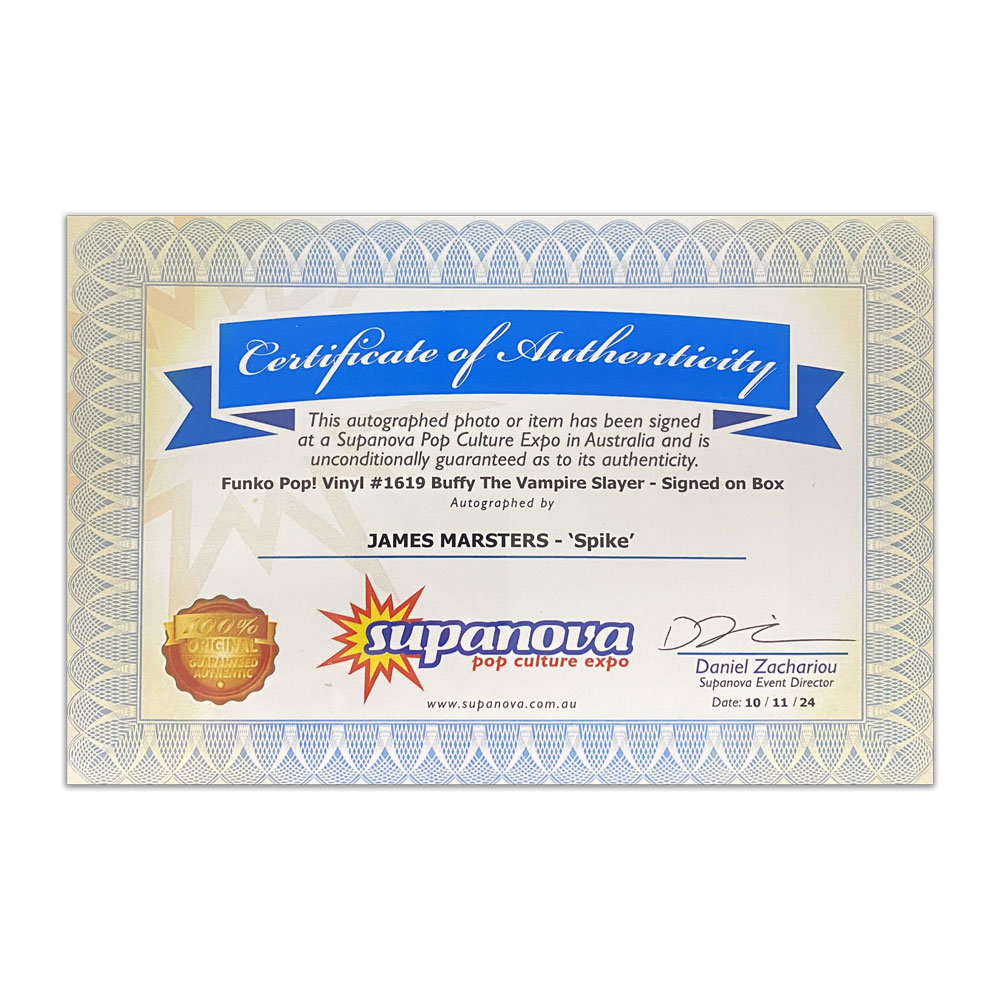 • Buff the Vampire Slayer Funko Pop! Vinyl hand signed by James Marsters (Spike) inscribed “Bite Me!”