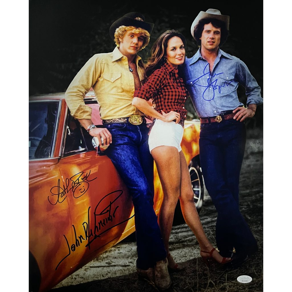 John Schneider, Tom Wopat, & Catherine Bach – “The Dukes Of Hazzard” Signed & Framed 16×20 Photo Display (JSA COA)