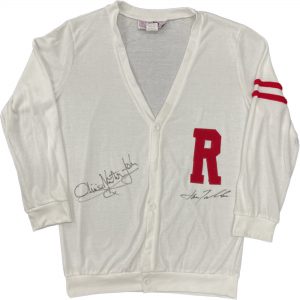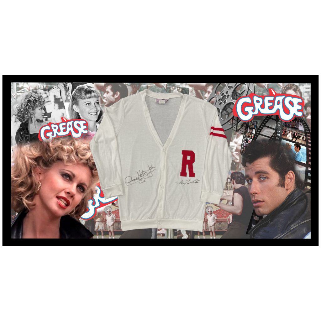 • Officially licensed grease Rydell High School letterman sweater hand signed by both John Travolta & Olivia Newton-John
