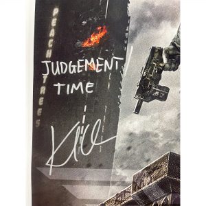 - Dredd canvas poster print (900mm x 600mm) hand signed & inscribed “JUDGEMENT TIME” in silver marker by Karl Urban (Judge Dredd)