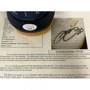 - Please note – signed shoe pictured is the exact signed shoe you will receive. Shoe can be purchased unframed upon request.