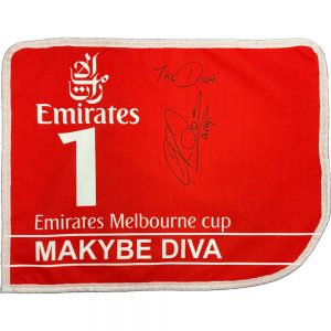 MAKYBE DIVA Glen Boss Signed & Framed Mini Melbourne Cup Saddlecloth