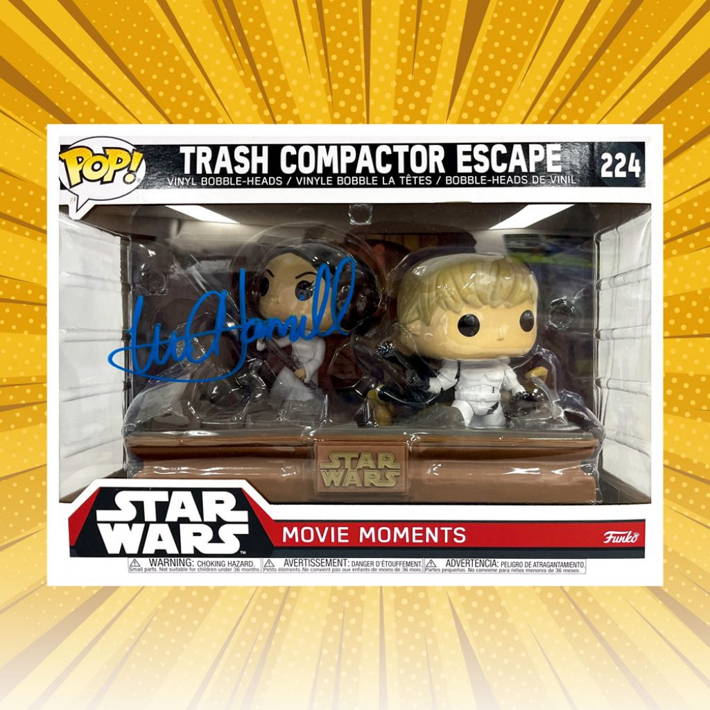 Home/Entertainment/Movies/Star Wars/Mark Hamill – “Star Wars” Trash Compactor #224 Autographed Funko POP! Vinyl Figure Set