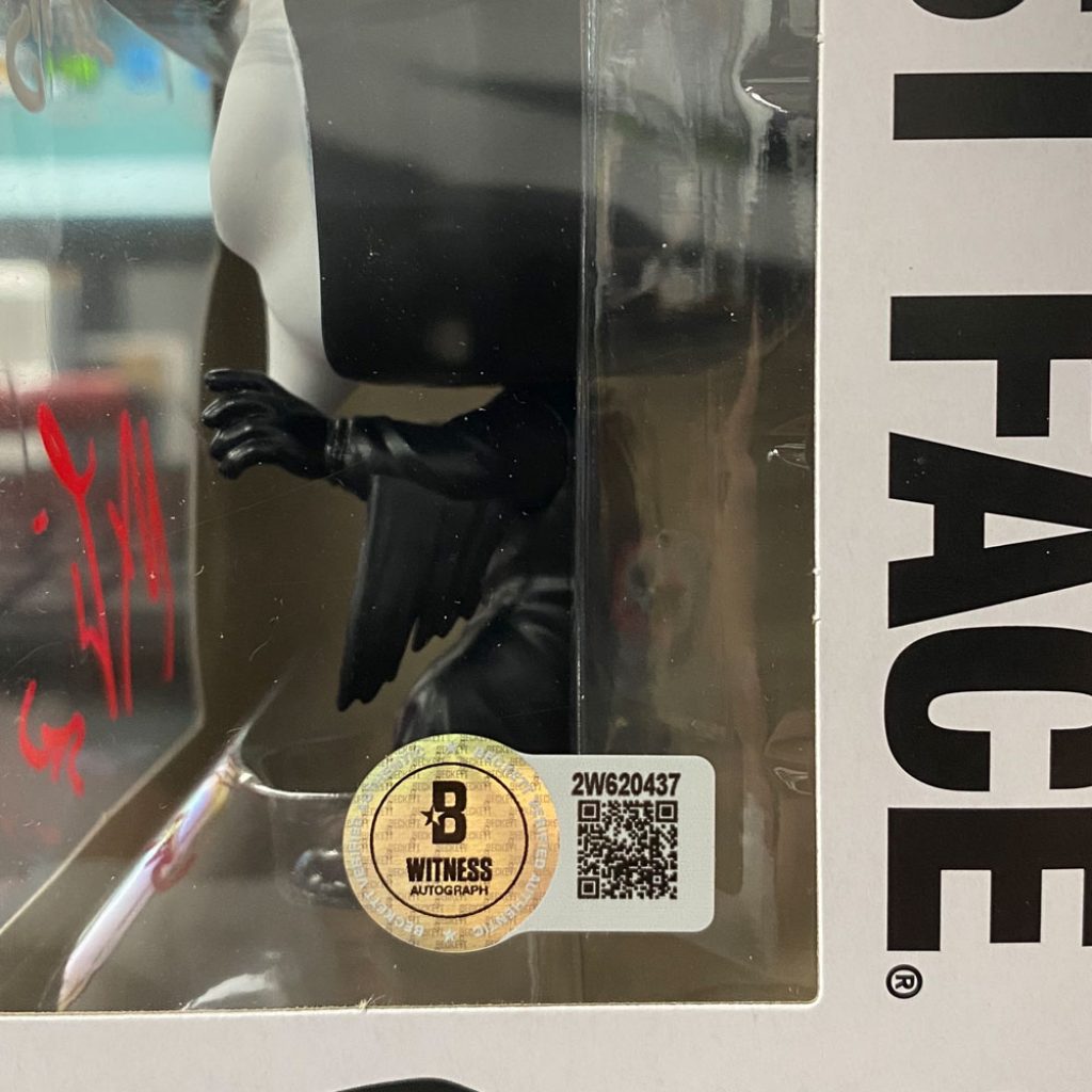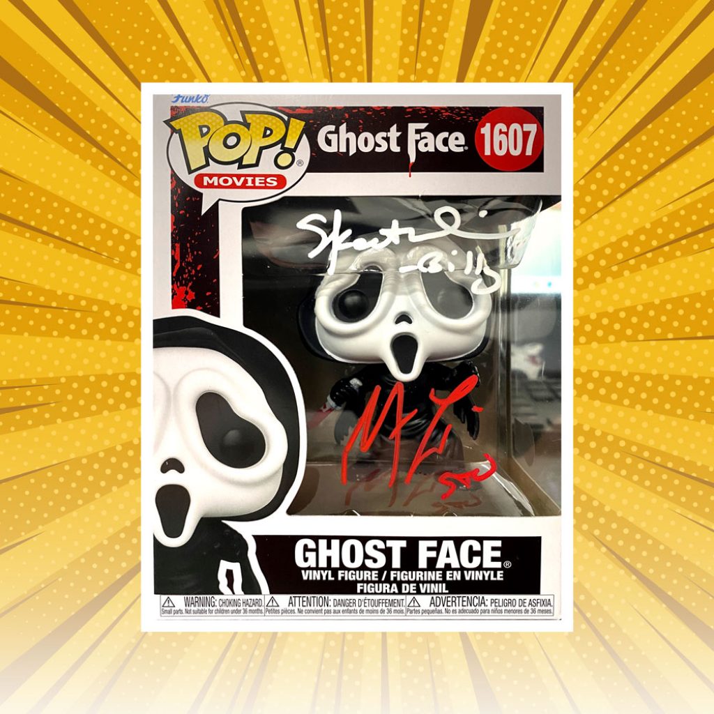• Ghost Face Funko Pop! Vinyl hand signed by Matthew Lillard & Skeet Ulrich inscribed “Stu” & “Billy”